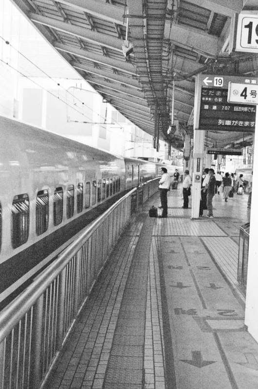 Which was actually pretty cool for a "hey...we're in JAPAN" kinda feeling, but also kinda weird because their time of day was completely outta whack with what the sun was saying. It was before 7 but felt like 10. We were trying to decide if we should go do something to kill the time, but I wasn't sure how tricky it was going to be to get to our first night stop, so decided to head back to the station so we could get moving as soon as possible. We should have been picking up on the fact that it doesn't take long to get anywhere in Japan, but heck we didn't know that yet. By the the time we got back and got coffee, it was time to hit the JR office and 15 minutes later we were on our first Shinkansen. It was just that easy.