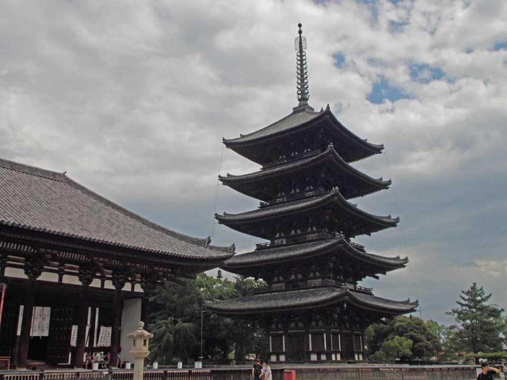 We were enjoying the stroll suggested in the Lonely Planet guide, and it was a pretty good walk around the various Temples and Shrines. After eating lunch at a decent little noodle shop we decided to head back down and have a bit of a wander through town on the way back to the station, passing through Kofukuji, home of the second tallest surviving pagoda in Japan. Note the modern addition of grounding wires running down the corners to prevent the otherwise inevitable fate that seems to await a wooden structure this size topped with a bronze ornament in a land where thunderstorms are common.
